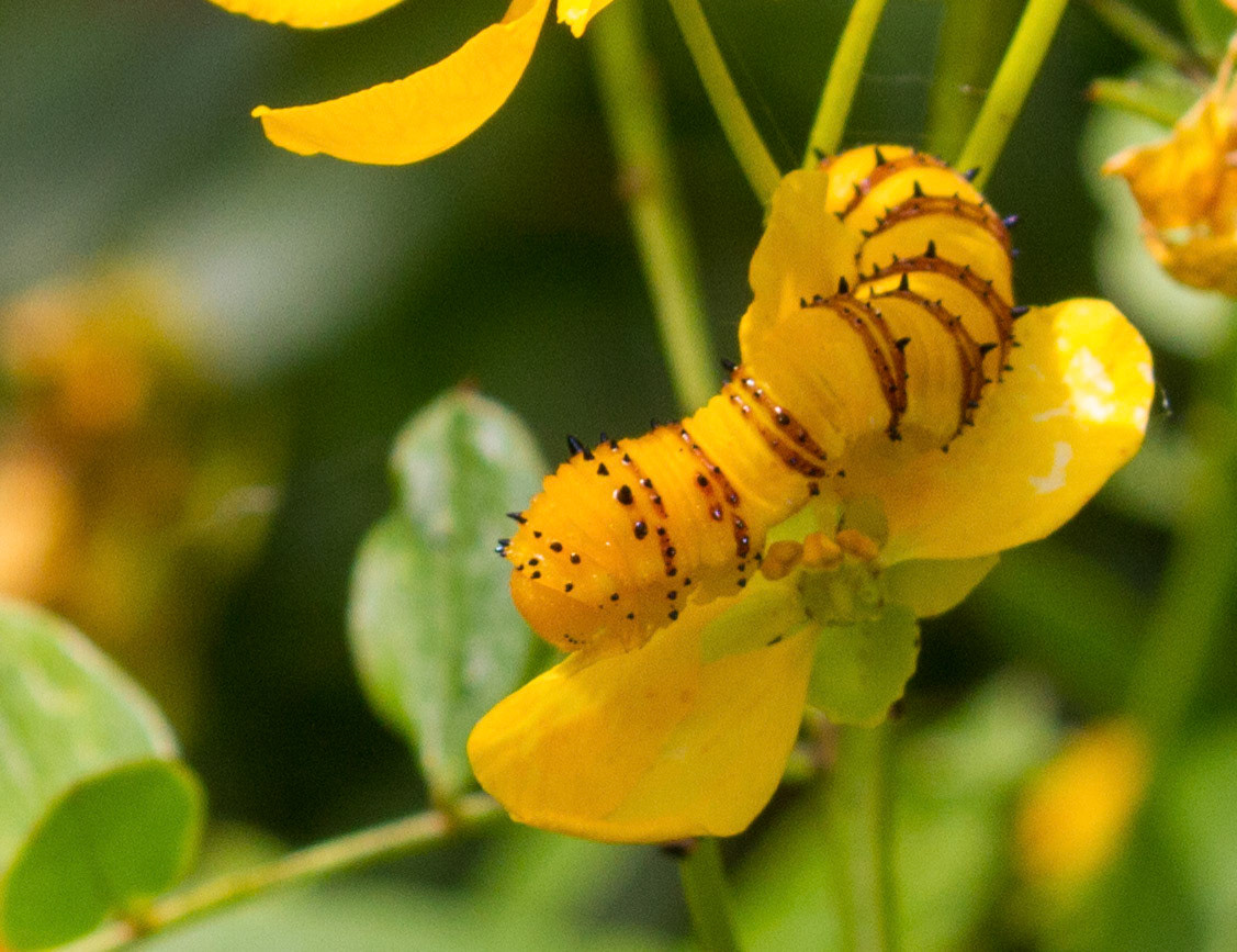 Cloudless Sulphur Caterpillars on Yellow Orchids